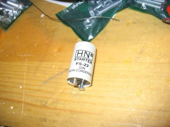 Here is a closeup of the fluorescent bulb starter.